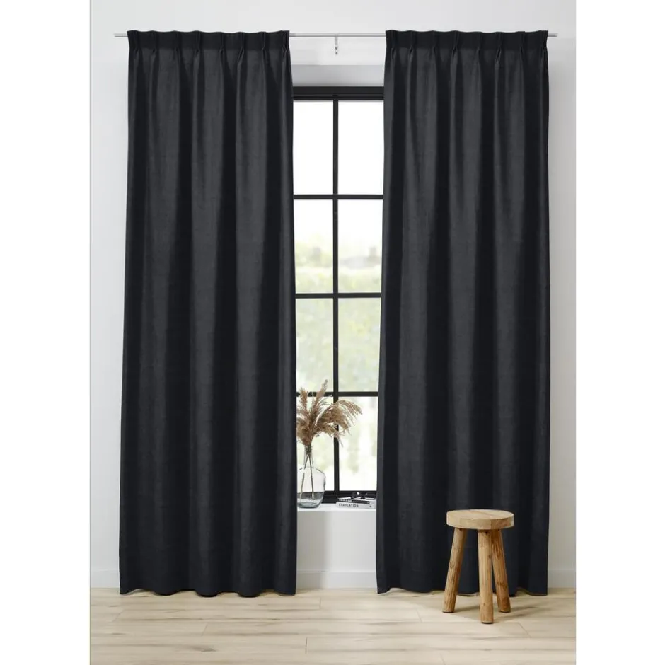 Gordijnstof gemaakt van glanzend zwart velours. Het zachte velours zorgt voor een stoere uitstraling. Stevig, vormvast en soepel. Dit velours gordijn is zeer geschikt om jouw huis te isoleren, vooral in de koude wintermaanden. Daarnaast heeft velours ook als functie dat de kamer waar je deze gordijnen ophangt, veel minder hol klinkt.Deze gordijnstof wordt warmer dan glas, zodat het binnen met gesloten gordijnen lekker behaaglijk aanvoelt. Hierdoor ontstaat er ook minder tocht. Door te kiezen voor een dikke stof (o.a. Sandra, Muck, Romeo, Benji, Jasmijn, Muck, Lou of Cloé), kan de verwarming mogelijk een graadje lager. Laat de verwarming vrij bij het hangen van gordijnen, dit zorgt ervoor dat de opstijgende warmte niet tussen het gordijn en het raam terecht komt. Het is handig als je gordijn op de vensterbank eindigt. Daarnaast kun je ook denken aan een combinatie tussen plisségordijnen en een overgordijn voor een extra isolerende werking. 145 cm breed.