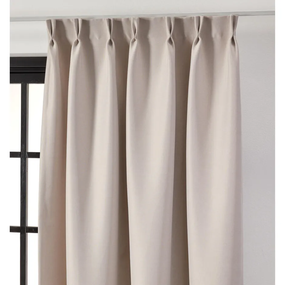 Gordijn Merel in een naturel kleur. Deze stof is 95% verduisterend. Hierdoor wijkt de achterkant af van de voorzijde. De stof is gemaakt van 95% polyester. Stofbreedte is 148 centimeter.