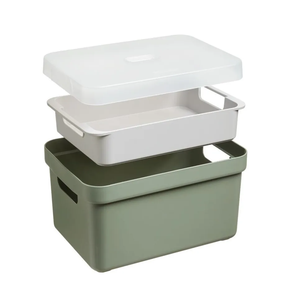 Tray grijs. Gemaakt van 100% gerecycled kunststof. Verkrijgbaar in verschillende maten vanaf maat S. Maat M is geschikt voor de 13L en 24L opbergbox.