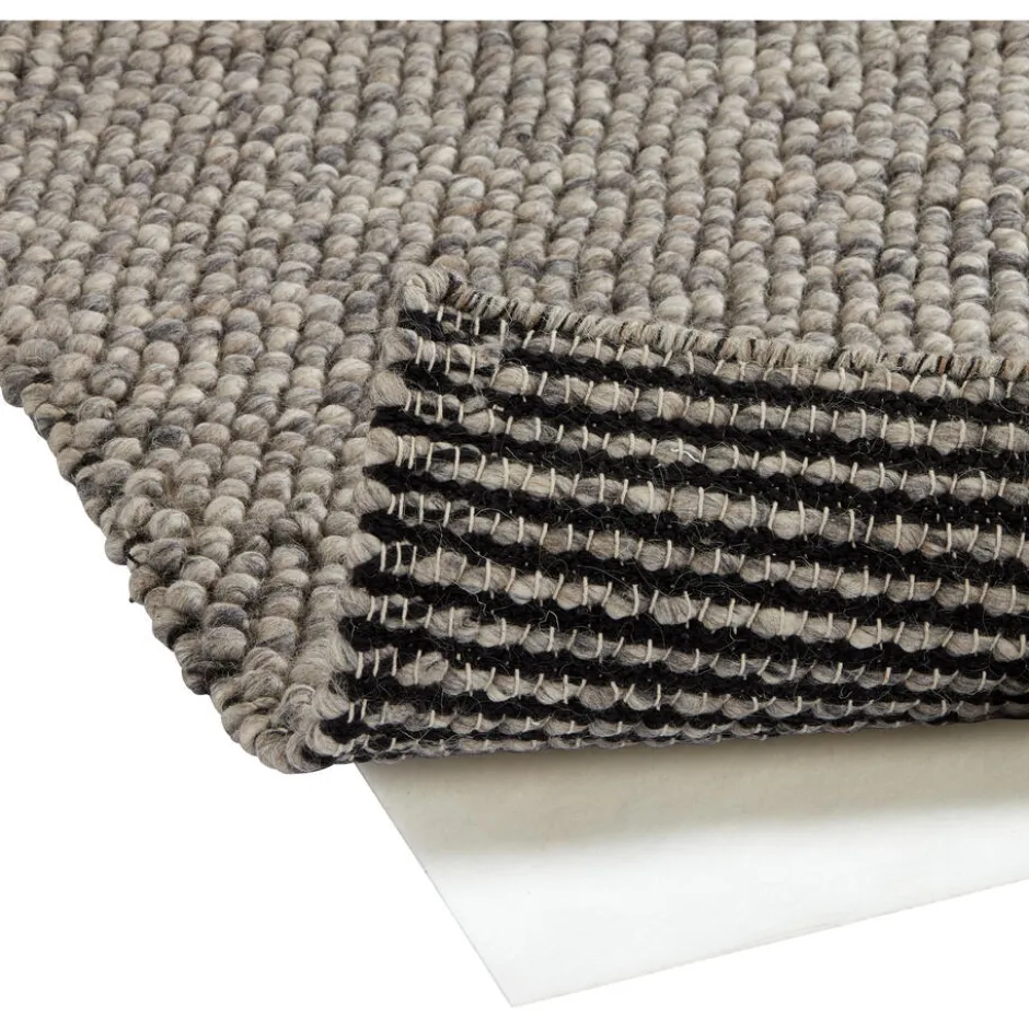 Handgemaakt vloerkleed met grijze kleur. Voorzien van het Care & Fair label. Veerkrachtig, geluiddempend en makkelijk in onderhoud. 280×200 cm (lxb).