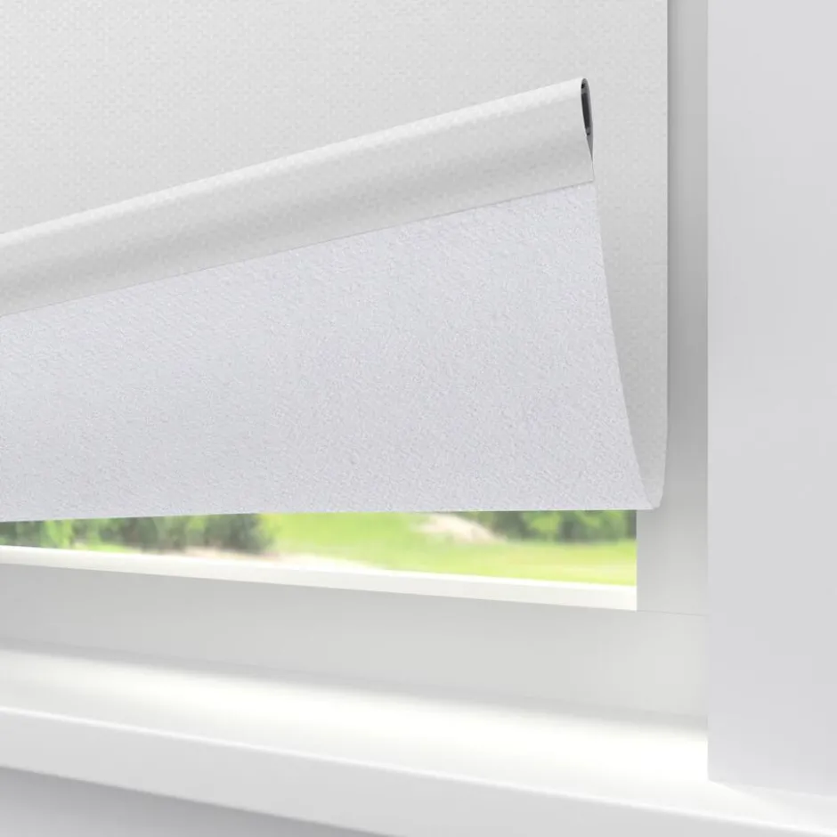 Verduisterend rolgordijn wit met een subtiele structuur. De witte achterzijde zorgt voor volledige verduistering. Ideaal voor slaapkamers maar ook te gebruiken voor keukens en andere woonruimtes. Op maat te maken en volledig naar wens samen te stellen met een ruime keuze uit accessoires en uitvoeringen. Elektrische bediening en zijgeleiding is mogelijk. Ook geschikt voor draaikiepramen. Eenvoudig met een vochtige doek af te nemen.