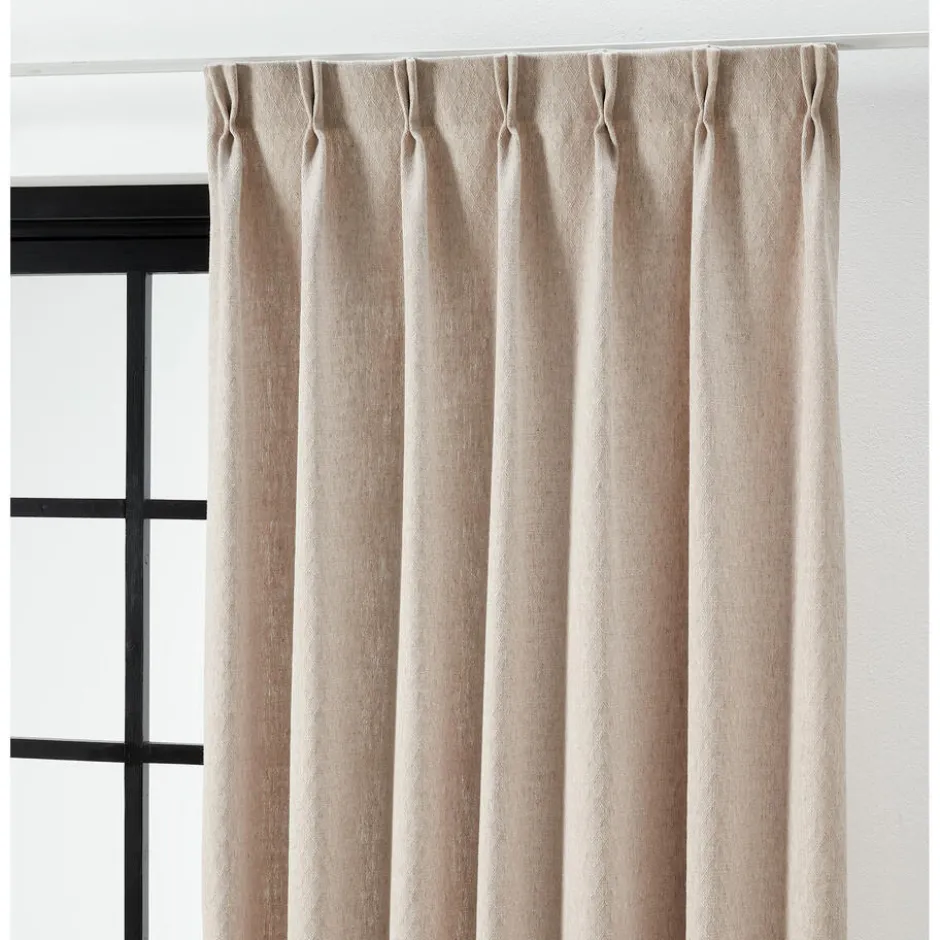 Lichtdoorlatende gordijnstof naturelkleurig met linnenlook en subtiel geweven patroon. Stevig, vormvast en slijtvast.140 cm breed.
