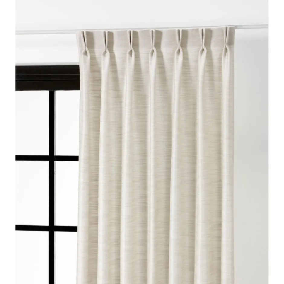 Soepelvallende zandkleurige gordijnstof. Vormvast en stevig. 138 cm breed.