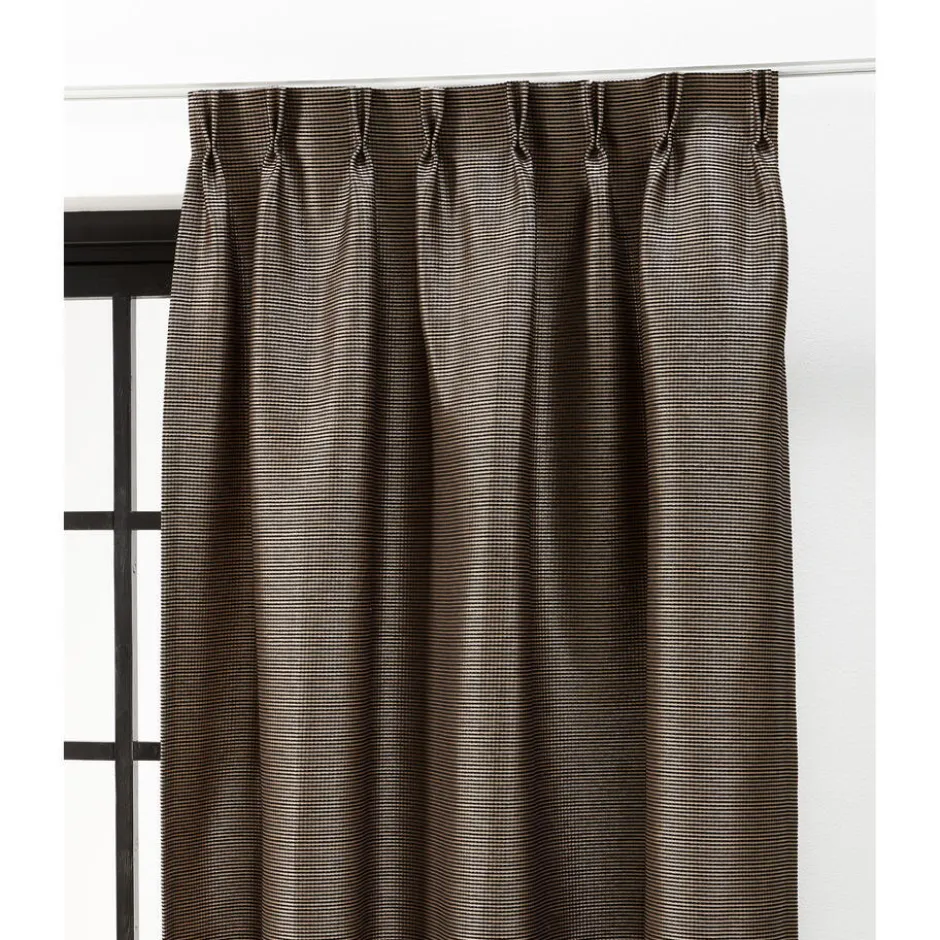 Gordijnstof van luxe materiaal met een zwarte en gouden kleur. Zacht en sterk. 140 cm breed.