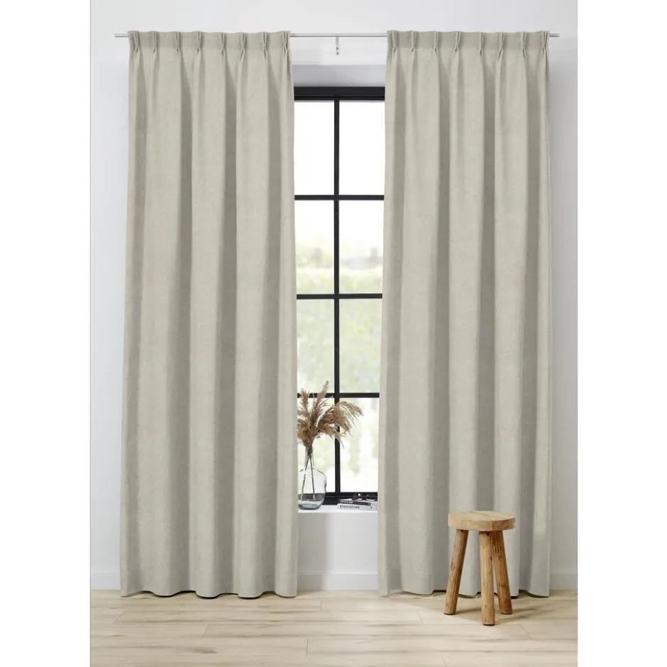 Lichtdoorlatende linnen gordijnstof naturelkleurig. De zachte, warme, dikke stof heeft een elegante en luxe uitstraling. Stevig, soepelvallend en redelijk kleurvast. Het weef/drukstof zorgt ervoor dat er geen luchtstroom door het materiaal mogelijk is en hierdoor heeft het een perfect isolerende werking. Het houd koude lucht buiten en warme lucht binnen. Deze gordijnstof wordt warmer dan glas, zodat het binnen met gesloten gordijnen lekker behaaglijk aanvoelt. Hierdoor ontstaat er ook minder tocht. Door te kiezen voor een dikke stof (o.a. Sandra, Muck, Romeo, Benji, Jasmijn, Muck, Lou of Cloé), kan de verwarming mogelijk een graadje lager. Laat de verwarming vrij bij het hangen van gordijnen, dit zorgt ervoor dat de opstijgende warmte niet tussen het gordijn en het raam terecht komt. Het is handig als je gordijn op de vensterbank eindigt. Daarnaast kun je ook denken aan een combinatie tussen plisségordijnen en een overgordijn voor een extra isolerende werking.