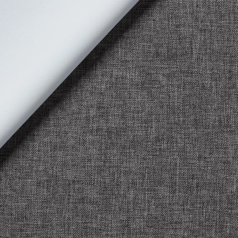 Verduisterende gordijnstof Nina in de kleur antraciet met een lichte glans. Soepel vallend, stevig en kreukherstellend. Dit black-out gordijn is aan de achterkant voorzien van een coating die ervoor zorgt dat dit gordijn 100% verduisterend is. Deze coating zorgt dat er geen licht door de stof komt. Daarom is de achterkant meestal wit en de voorkant is de gewone gordijnstof. Een black-out gordijn voelt wat stugger aan. Deze gordijnstof houdt, in tegenstelling tot dim-outs 100% het zonlicht tegen. Bij de confectie van deze kwaliteit kunnen kleine gaatjes ontstaan. Dit is inherent aan de stof en kan niet voorkomen worden. 148 cm breed.