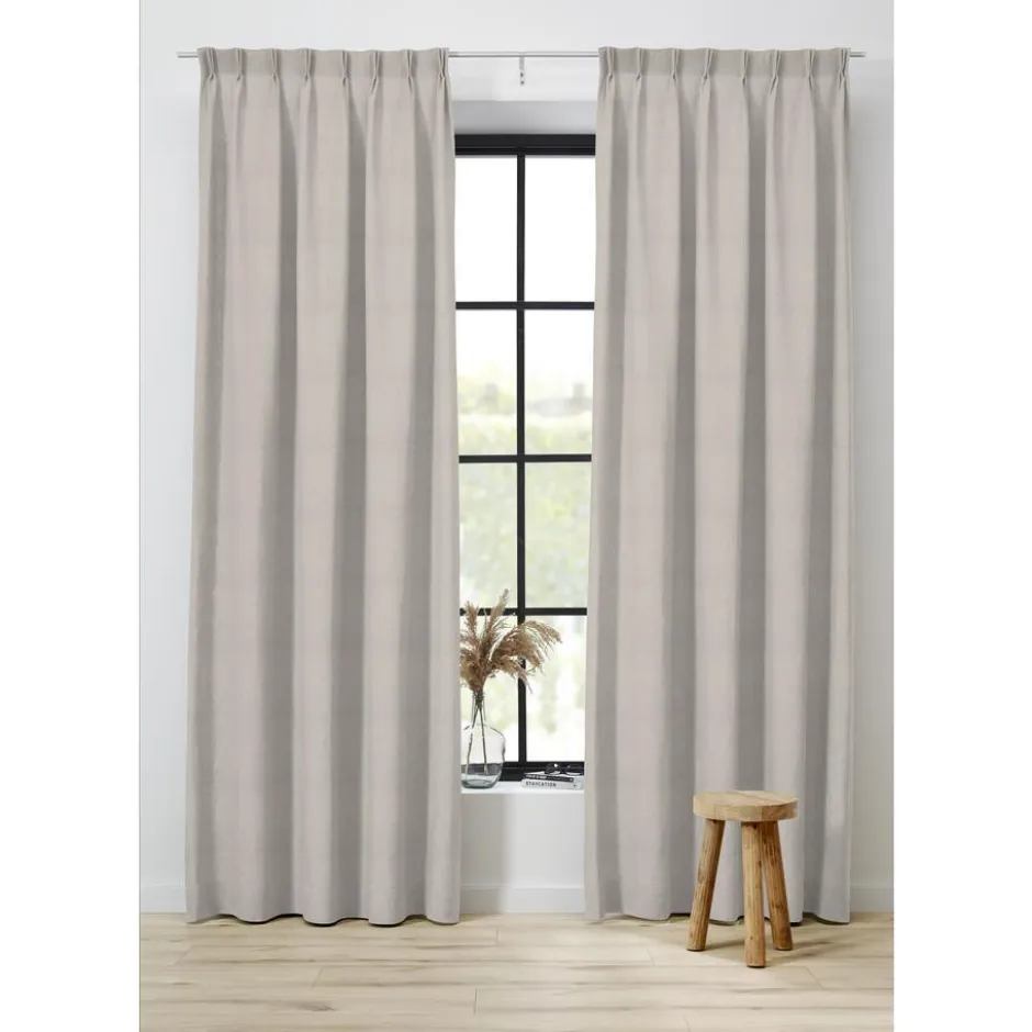 Zandkleurige uni gordijnstof. Breedte 145 cm.
