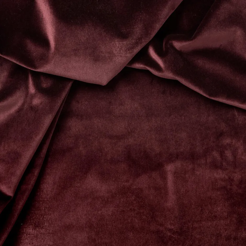 Velours Romeo is in de kleur bordeaux en geeft een warme sfeer. De stof is gemaakt uit een combinatie van katoen en modal. Dat maakt dat de stof niet alleen duurzaam is, maar ook erg zacht aanvoelt. Velours Romeo voldoet aan het Oekotex keurmerk en is gemaakt in een omgeving die veilig is voor zowel mens als milieu.