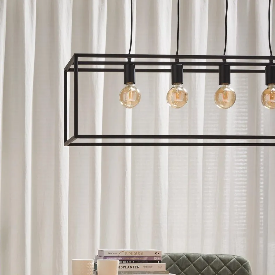 Hanglamp met rechthoekig zwart metalen frame. 100x29x130 cm (lxbxh).