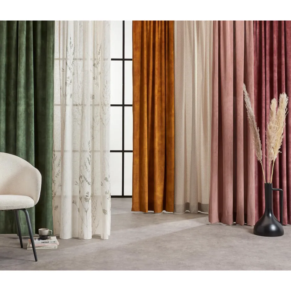 Transparante gordijnstof met botanische print, natuurlijke uitstraling en linnenlook (15% linnen). Soepelvallend. 300 cm.