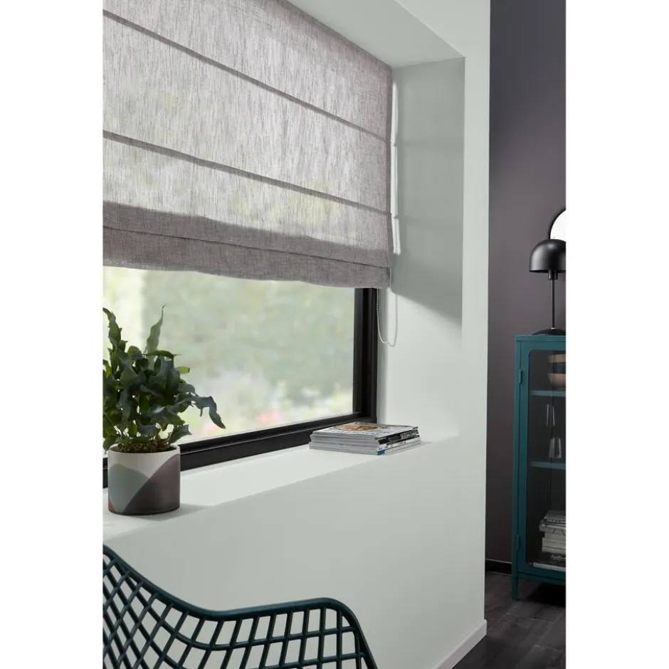Inbetween gemaakt van grijze stof. Soepel en vormvast. 300 cm hoog.