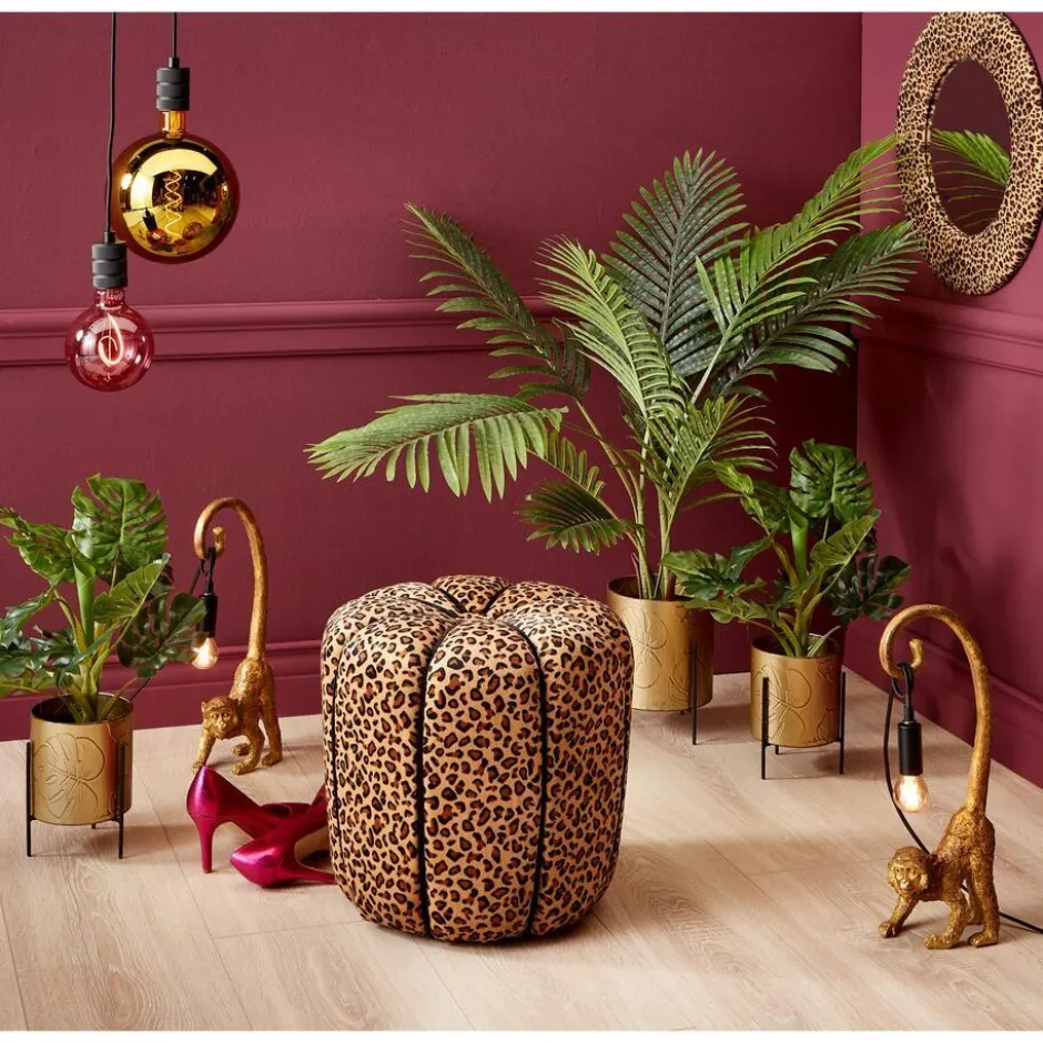 Moderne en sfeervolle tafellamp van een gouden aap. E14 fitting, exclusief lichtbron. Afmeting 42x8x15 cm (hxbxl).