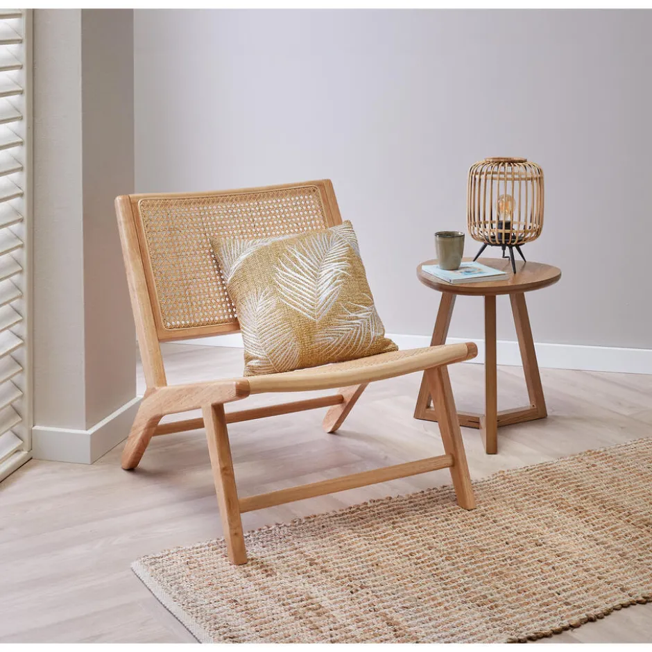 Tafellamp van Bamboe met een zwarte voet. Fitting groot E27, exclusief. Afmeting 21×31 cm (dxh).